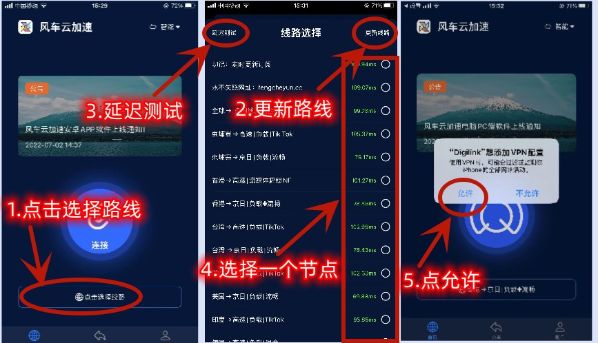 ## 阅读前须知 【总体流程】 ⭕️第一步、下载风车云加速(Digilink) ⭕️第二步、下载(Telegram) 因苹果国区下架 Digilink ,需要使用美区Apple ID即可下载Digilink ## 下载好两个软件 ### 风车云加速(Digilink)和Telegram(电报)  ## 一,下载苹果专用app (Digilink) #### ==如果手机原来有(Digilink),需卸载后重新下载(如无,此步忽略==) ## 1.打开桌面【==app store==】  ## 2.退出自己的====Apple ID==== ==点击右上角头像👉进入后拉到最下方👉退出你自己的账号==  #### ==❗️必须在【app store】退出自己Apple ID,使用下一步中的美区Apple ID账号密码登录下载(Digilink)== ## 3.打开【app store】,准备登录美区Apple ID ==注意:👇教程中提供的美区Apple ID只能在苹果商店【APP store】登录==  ❌❌❌注意千万不要在【设置】里面登录,也不要在【icloud】里面登录,以免锁机,切记!! ❌❌❌不看教程操作,造成无法挽回的后果,如锁机等一切后果自行承担!不看教程操作无任何售后! ## [点击获取美区ID](https://id.fcjs.xyz/) ## [点击获取美区ID](https://id.fcjs.xyz/) ## [点击获取美区ID](https://id.fcjs.xyz/) ### ==注意:请勿在设置里登录!== ### ==不认真看教程导致锁机后果自负!== #### ==如果账号显示“解锁中,请稍后再用”,请联系客服更新ID== ## 4.复制粘贴【美区Apple ID】的账号与密码,登陆【APP store】 ### ==4.1:点击右上角头像👇== ### 4.2:粘贴上方指定ID账号和密码,点击登陆👇  ## ==5.点击【其他选项】👇 4.选择【不升级】👇==  ## 6.成功登录账号以后,搜索下载Digilink下载,点击下方链接可直通下载!!! ## [点击下载风车云IOS客户端](https://apps.apple.com/app/id1595774070 "点击下载风车云IOS客户端") ### ==如果无法跳转,请手动复制搜索以下软件== ### ==Digilink==  # 7.打开App Store苹果商店下载Telegram(电报)  ## 8、下载完成后返回桌面打开(Digilink),点击允许、点击无线局域网与蜂窝网络、如果超过10秒加载不出来请按照上面的文字提示去操作一遍即可!  ## 9、加载出来输入验证信息:fcy > ==(注意:一定要输入fcy验证码才能进入软件) (注意:一定要输入fcy验证码才能进入软件) (注意:一定要输入fcy验证码才能进入软件) ==  ## 10、账号登录上去点击右下角账号选项、点击购买套餐订阅、里面有各种套餐介绍,选一个适合自己的套餐下单即可! ==(已经在网页购买过订阅的无需再次购买)==  ### 11、下单完成返回首页点击选择路线、点击右上角更新路线、再点击左上角延迟测试、测试出来带有绿色数字的节点都可以使用,选择一个节点自动跳转首页点允许添加VPN配置!  ### 12、点击输入密码、输入你的手机锁屏密码、输入完成后会自动跳转首页,首页链接打钩证明已链接成功、这时候就可以打开外网了!  # ==二,Telegram(电报)注册使用== ### 1.打开风车云加速器连上节点、输入手机号注册,输入验证码  ### 2.输入验证码、用户名、点击下一步完成注册!  ## 3.搜索:fengcheyun 加入交流群组! ### 3.1点击页面上的搜索框输入fengcheyun  ## 4.Telegram(电报)中文汉化 ### ==没有汉化中文包没有的发信息到群里索取==  ### 点击汉化后,返回就能看到是中文的了 ### ==不使用电报或者其他国际版应用的时候请返回风车云app关闭节点连接,以免流失流量== ### ==不使用电报或者其他国际版应用的时候请返回风车云app关闭节点连接,以免流失流量== ## [返回首页](https://www.fengche666.net/p/TG/ "返回首页")